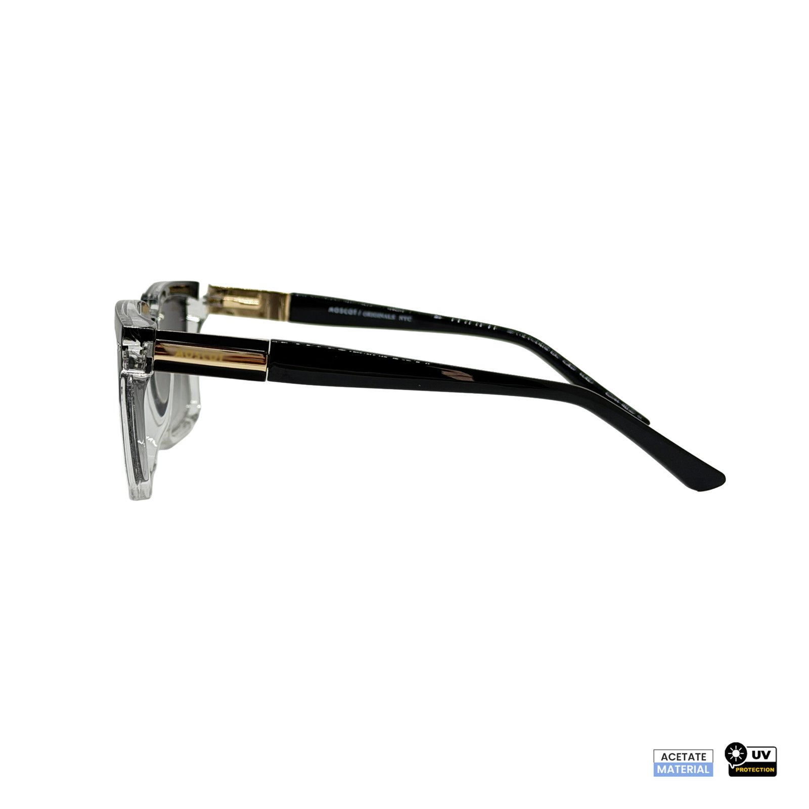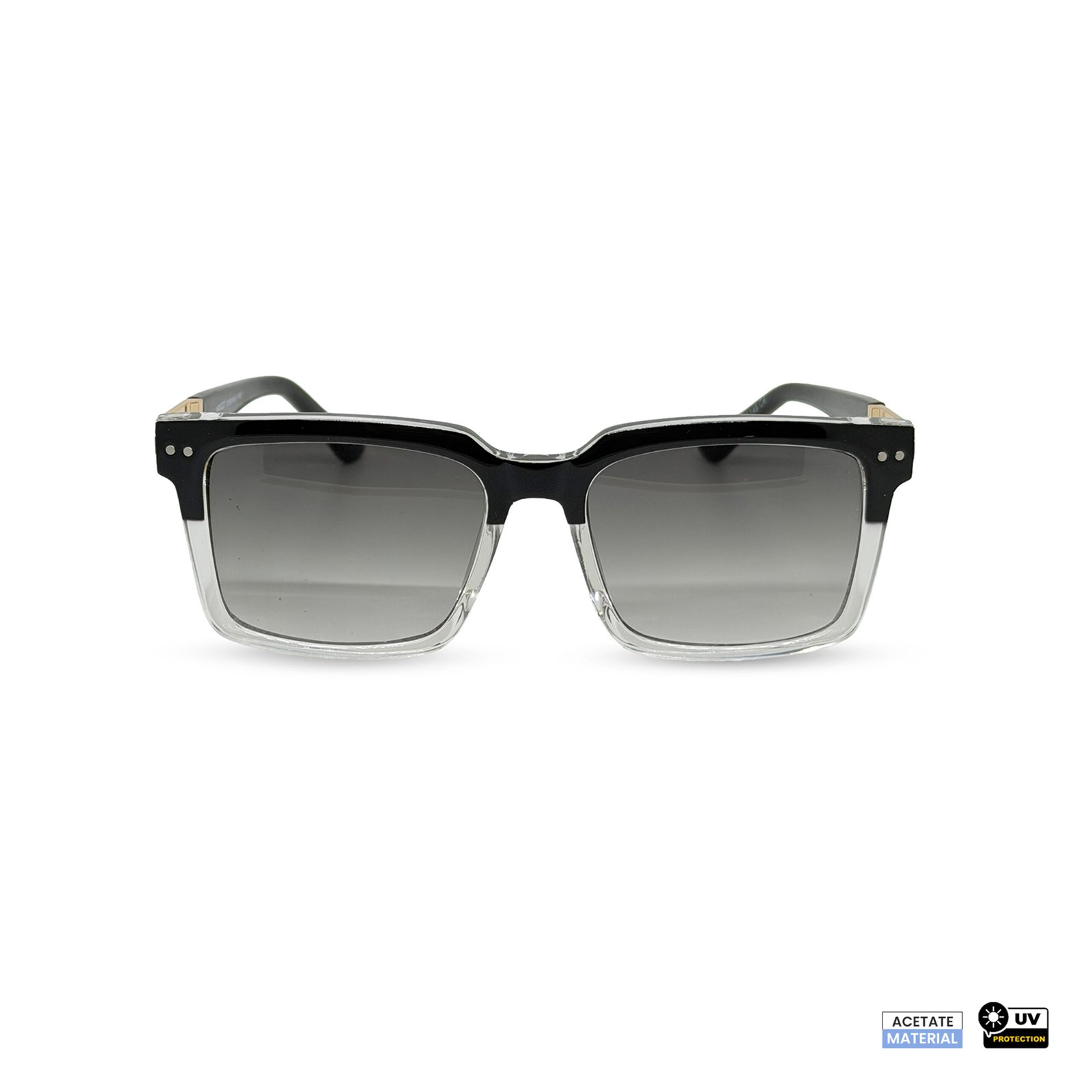 - Dual-Tone Acetate Build: Black upper with crystal-clear lower construction.